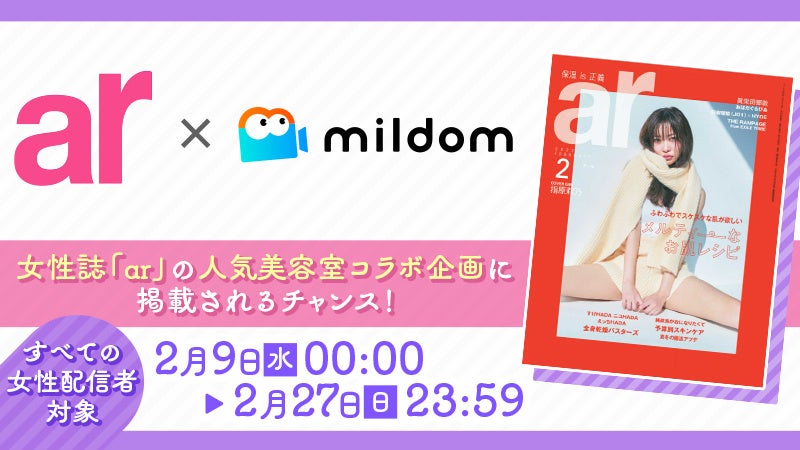 ライブ配信サービス「Mildom」は、人気ファッション雑誌「ar(アール)」とのタイアップイベントを2月9日(水)より開催